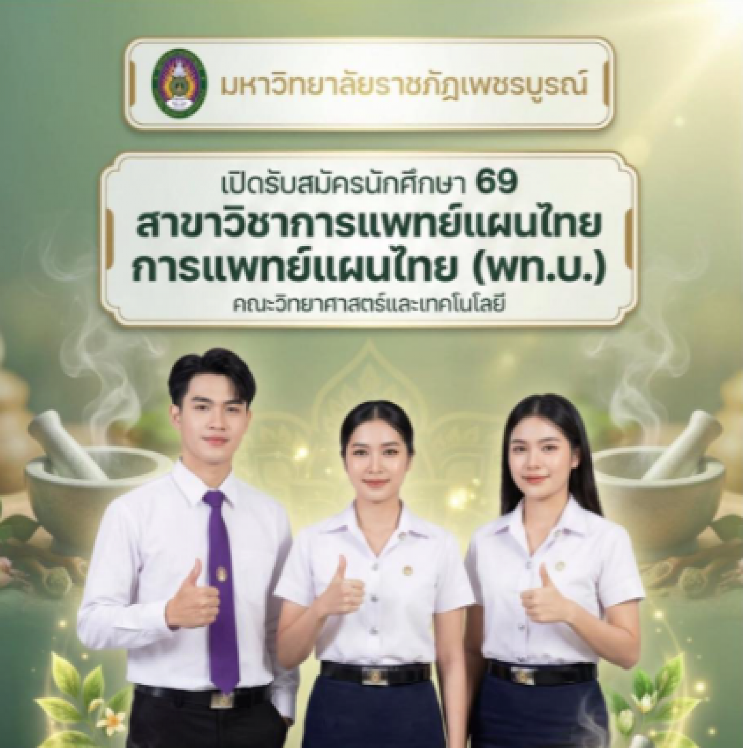 สาขาวิชาแพทย์แผนไทย มหาวิทยาลัยราชภัฏเพชรบูรณ์ รับสมัครนักศึกษาใหม่ ปีการศึกษา 2569