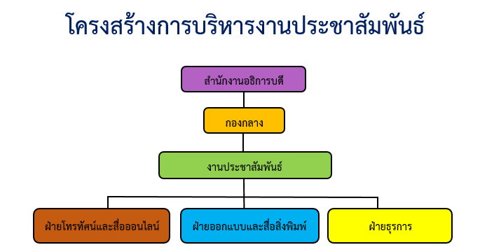 ภาระหน้าที่ของงานประชาสัมพันธ์งานประชาสัมพันธ์ กองกลาง สำนักงานอธิการบดี มหาวิทยาลัยราชภัฏเพชรบูรณ์ มีหน้าที่รับผิดชอบด้านการเผยแพร่ข้อมูลข่าวสาร ขององค์กรให้สาธารณชนได้รับทราบอย่างกว้างขวางให้มากที่สุด โดยใช้ช่องทางของสื่อประชาสัมพันธ์ ต่าง ๆ อาทิ การประกาศเสียงตามสาย การจัดรายการวิทยุการผลิตหนังสือพิมพ์ราชภัฏเพชรบูรณ์โพสต์ จดหมายข่าว เว็ปไซต์ ฯลฯ ให้บริการตอบข้อซักถามของนักศึกษา ผู้มาติดต่อต่างๆ และส่งเสริมสนับสนุนพัฒนาความรู้ สร้างความเข้าใจเกี่ยวกับทฤษฎี หลักการและวิธีการดำเนินงานประชาสัมพันธ์ในความรับผิดชอบให้แก่ผู้ใต้บังคับบัญชาและผู้ร่วมงาน เพื่อสร้างความรู้ความเข้าใจการนำไปใช้ประโยชน์และเป็นแนวทางในการปฏิบัติงานด้านประชาสัมพันธ์รวมทั้งสร้างและพัฒนาเครือข่ายการประชาสัมพันธ์ให้เกิดในหน่วยงานระดับต่าง ๆ การทำงานของทีมงานงานประชาสัมพันธ์ ทุกคนตระหนัก เสมอในด้านความเร็วถูกต้องและชัดเจน วิสัยทัศน์ งานประชาสัมพันธ์ สำนักงานอธิการบดี มหาวิทยาลัยราชภัฏเพชรบูรณ์ งานประชาสัมพันธ์เป็นกลไกสำคัญในการปฏิบัติงานสนับสนุนทางด้านวิชาการภายใต้โครงสร้างกองกลาง สำนักงานอธิการบดี ดูแลภารกิจด้านการประชาสัมพันธ์ และสร้างภาพลักษณ์ที่ดีแก่มหาวิทยาลัยราชภัฏเพชรบูรณ์ ซึ่งจัดตั้งขึ้นภายใต้กองกลาง สำนักงานอธิการบดี มหาวิทยาลัยราชภัฏเพชรบูรณ์ ตั้งอยู่เลขที่ ๘๓ หมู่ที่ ๑๑ ถนนสระบุรี -หล่มสัก ตำบลสะเดียง อำเภอเมือง จังหวัดเพชรบูรณ์ เป็นส่วนราชการระดับกอง สังกัดมหาวิทยาลัยราชภัฏเพชรบูรณ์ โดยมีรายละเอียดภาระงานดังนี้1. หัวหน้างานประชาสัมพันธ์ ประเภทตำแหน่ง พนักงานมหาวิทยาลัย มีหน้าที่รับผิดชอบดังนี้1.1. กำกับงานประชาสัมพันธ์มหาวิทยาลัย1.2. บริหารการผลิตสื่อมัลติมีเดียและกราฟิกประชาสัมพันธ์1.3. ควบคุมงานข่าวประชาสัมพันธ์และเสียงตามสาย1.4. กำกับงานสื่อมวลชนสัมพันธ์และการสื่อสารองค์กร1.5. บริหารงานพิธีกรและการดำเนินรายการ1.6.บริหารจัดการงานเขียนข่าวเพื่อการประชาสัมพันธ์2. ฝ่ายโทรทัศน์และสื่อออนไลน์ ตำแหน่ง ระดับปฏิบัติการ ประเภทตำแหน่ง พนักงานมหาวิทยาลัย มีหน้าที่รับผิดชอบดังนี้2.1. งานจัดตั้งและถ่ายทอดสดภาพเคลื่อนไหวผ่านทางสื่อโซเชียลเน็ตเวิร์กเพื่อการประชาสัมพันธ์2.2. งานบันทึกภาพเคลื่อนไหวเพื่อการประชาสัมพันธ์2.3. งานผลิตข่าว สื่อวีดิทัศน์เพื่อการประชาสัมพันธ์และสื่อการเรียนการสอนและบริการวิชาการ2.4. งานซ่อมบำรุงวัสดุ อุปกรณ์ ครุภัณฑ์ เพื่อการประชาสัมพันธ์2.5. งานดูแลระบบ