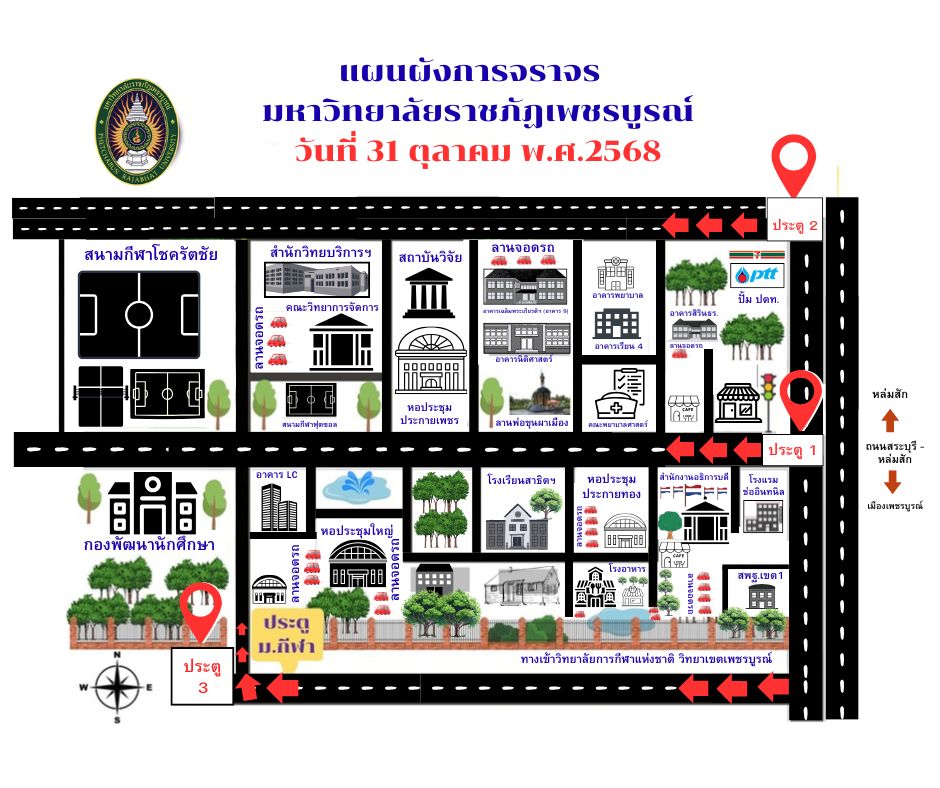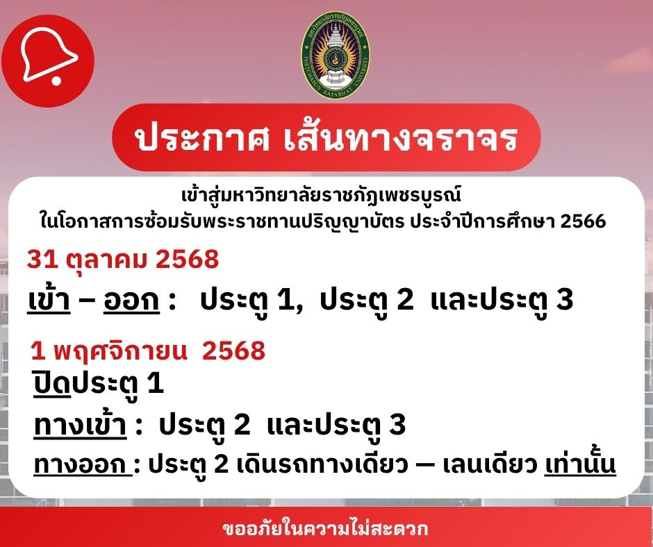 โปรด วางแผนการเดินทางล่วงหน้า และ เผื่อเวลาในการเข้า–ออกมหาวิทยาลัย เพื่อความสะดวกและความปลอดภัย