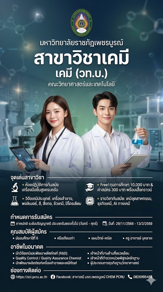 เคมีปี 69 เปิดรับสมัครแล้ว! จัดเต็มทุนการศึกษาและสิทธิพิเศษเพียบ!