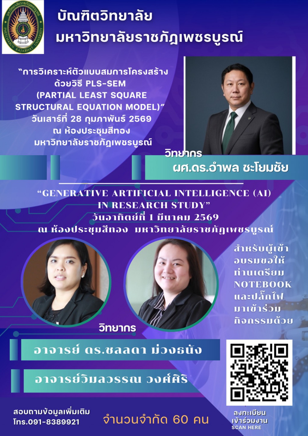 “การวิเคราะห์ตัวแบบสมการโครงสร้างด้วยวิธี PLS-SEM (Partial Least Square Structural Equation Model)” วันเสาร์ที่ 28 กุมภาพันธ์ 2569