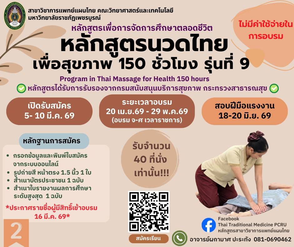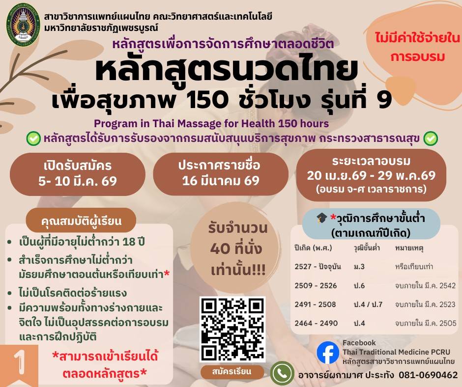 หลักสูตรนวดไทยเพื่อสุขภาพ 150 ชั่วโมง รุ่นที่ 9